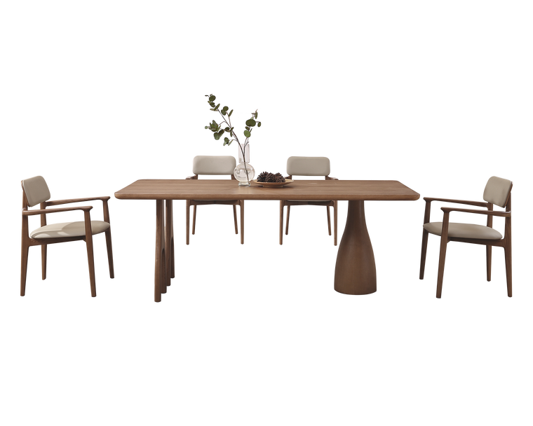 Description: Expertly crafted in the elegant and minimalist Wabi-Sabi style, this dining table and chairs set features solid wood construction for durability and beauty. Cylindrical wooden...